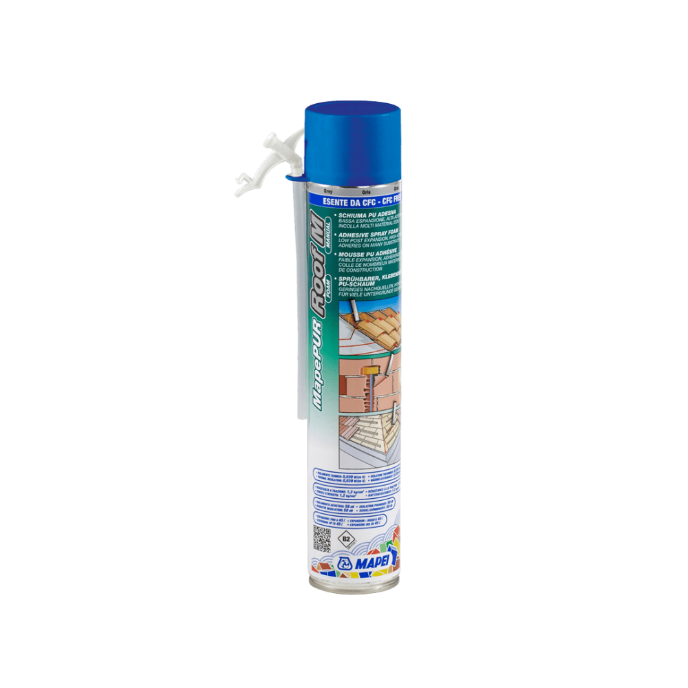A Mapei MapePUR Roof Foam M egy egykomponensű, duzzadó poliuretán ragasztóhab, amelyet építőelemek gyors rögzítésére, hézagok kitöltésére és hőszigetelésre fejlesztettek ki. Ez a „kézi” változat, amelyhez nincs szükség kinyomópisztolyra, mivel a flakon saját adagolókarral rendelkezik.